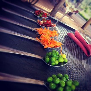 Logo quando se chega, recebe uma taça de vinho branco. Eu senti que era hora de sentar, relaxar e esperar pelas comidas que viriam. Decisão acertada, pois as entradas eram fantásticas. Desde as saladas, que tinham uma linda apresentação, até as empanadas de carne, com um leve molho de tomate, que combinou muito com o Cabernet Sauvignon servido.