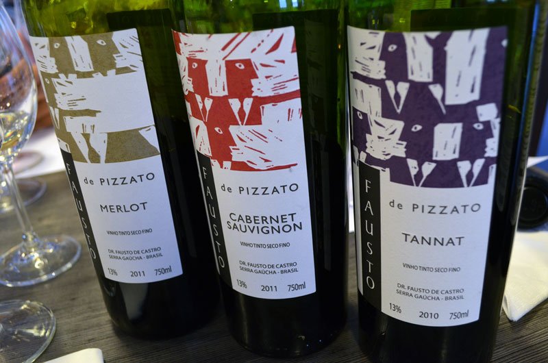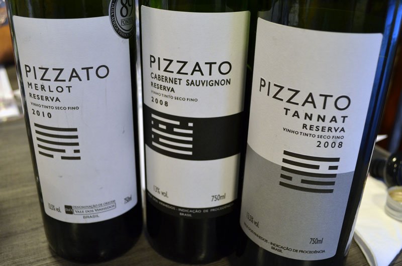 A vinícola tem uma duas linhas de vinhos (Fausto e Pizzato) e cada uma tem um monte de rótulos. É preciso atenção para não se perder e um bom olfato/paladar para distinguir um do outro.