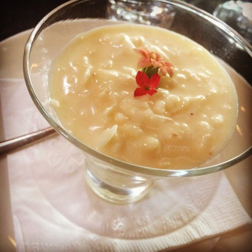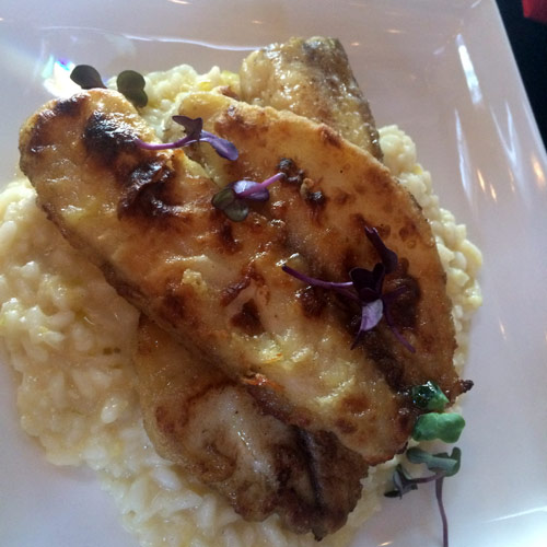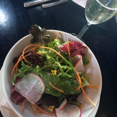 Eu estive lá numa terça-feira e o menu era Mix de folhas com molho de iogurte e hortelã, Filé de St. Peter grelhado com risoto de limão siciliano, Cocada cremosa.